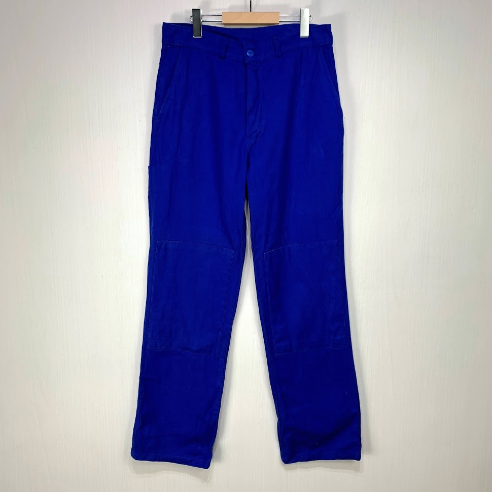> フレンチ ワークパンツ ダブルニー 42サイズ ブルー 青 ウエスト 40cm MUZELLE DULAC 古着 メンズ ユーロワーク 膝 ヴィンテージ