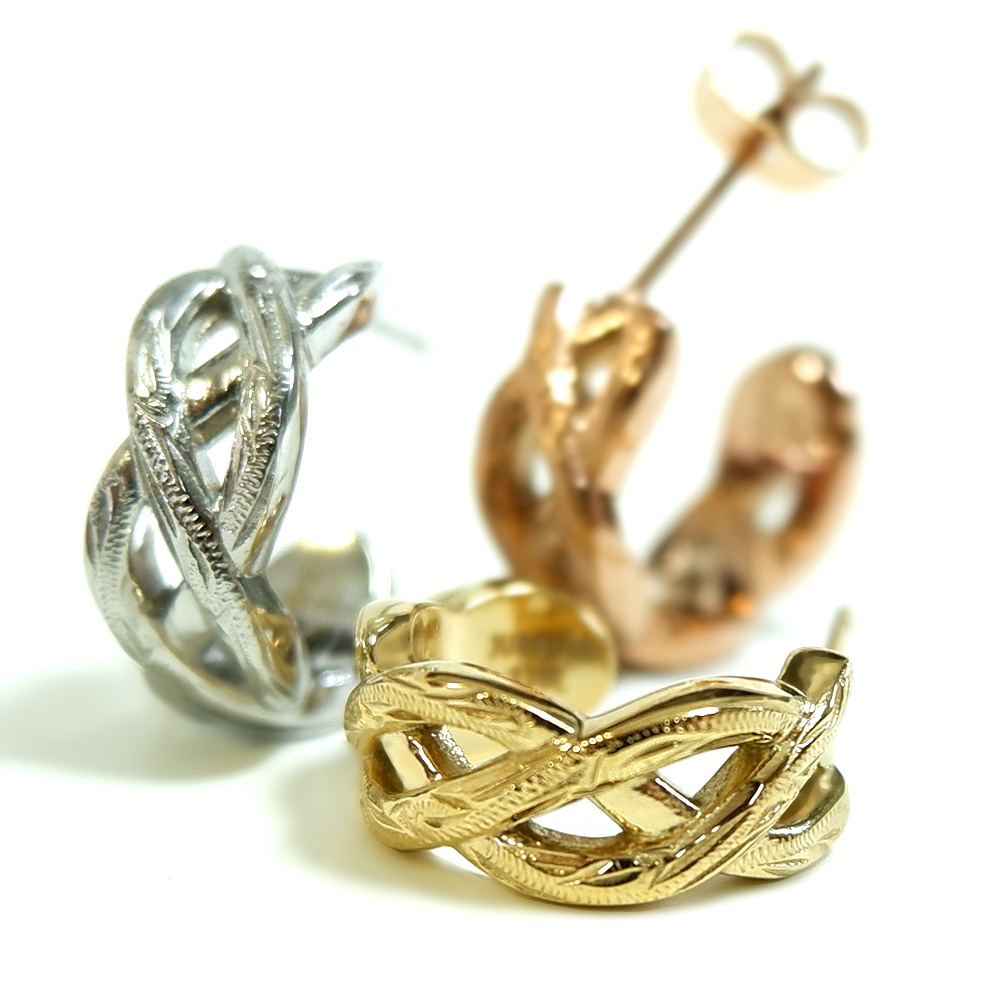 > ★人気★片耳★インスタ★ハワイアンジュエリー★金属アレルギー&温泉&海水浴OK★ステンレスピアス★波&ピンクGD&ゴールド&シルバー
