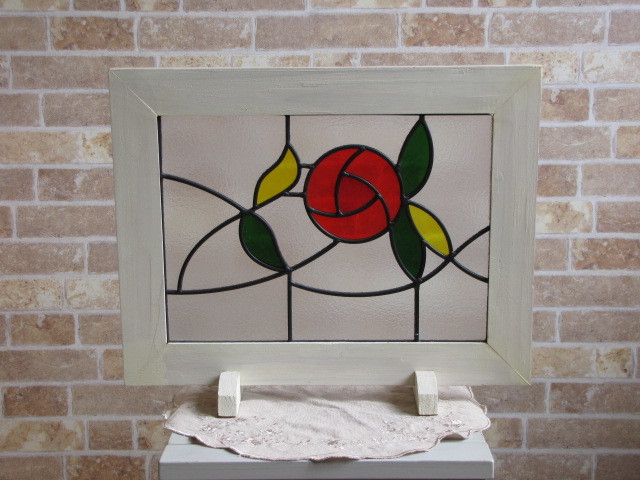 - ティアラ ステンドグラス ローズ アンティークローズ スタンド脚付き 薔薇 バラ フレンチ アンティーク風