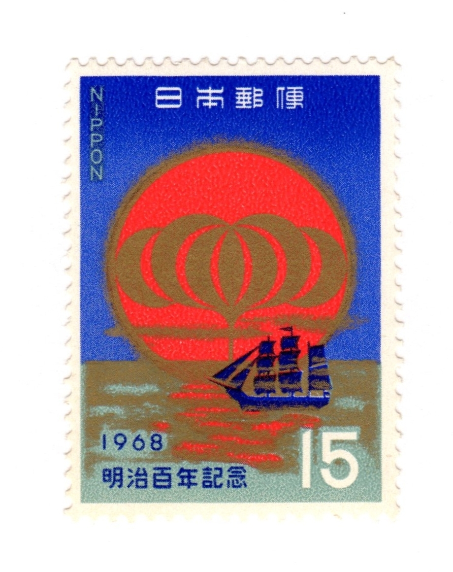 > 昭和43年1968「明治100年記念/百年祭マークと昌平丸」15円切手・未使用【送料無料】「熊五郎の切手」00800391