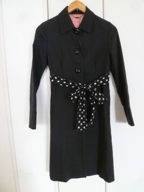 > ef-de/エフデ○黒水玉リボンベルト付きシングルコート7/S7号ブラックキレイめ美ラインフランドルスプリングコート○③JK115