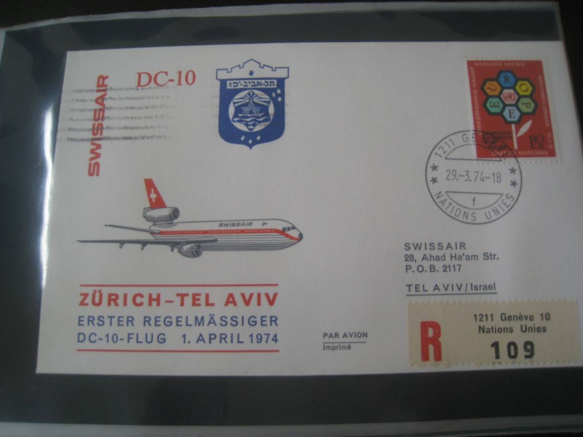 - ★F212 FDC/FFC初日カバー1974 スイス航空 DC-10 チューリッヒ - テルアビブ -
