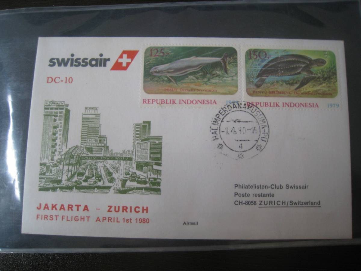- ★F401 FDC/FFC初日カバー1980 スイス航空 DC-10 ジャカルタ - チューリッヒ -