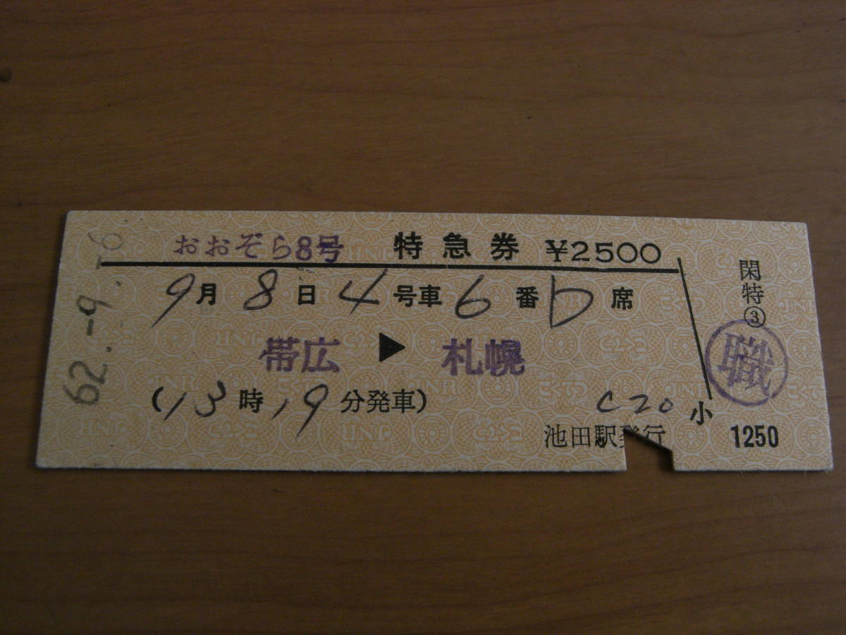 - おおぞら8号特急券 帯広→札幌 昭和52年9月6日発行 (根室本線)池田駅発行