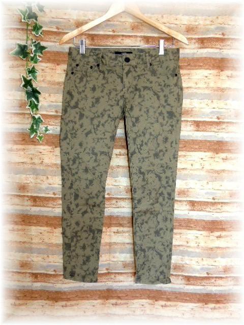 - AZUL by moussy 7分丈 スキニー デニム M カーキ×花柄