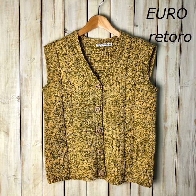 - ヨーロッパ古着 ヴィンテージ ざっくりフィッシャーマンニットベスト M~L ユーロ古着 アランニット ケーブルニット 北欧 ⑱