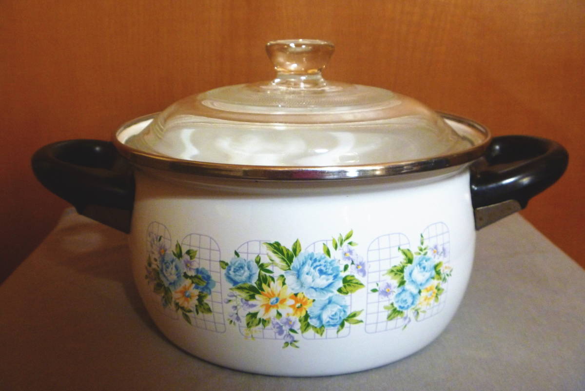 - 【昭和レトロ 花柄 両手鍋 蓋付き】調理器具