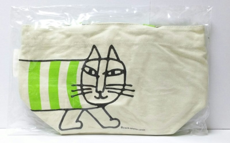 > 絶版品 Lisa Larson MIKEY ネコのマイキー ランチトート 緑 前後プリント Sサイズ アルミバッグ・ストラップ付き※未開封品/2018年製品