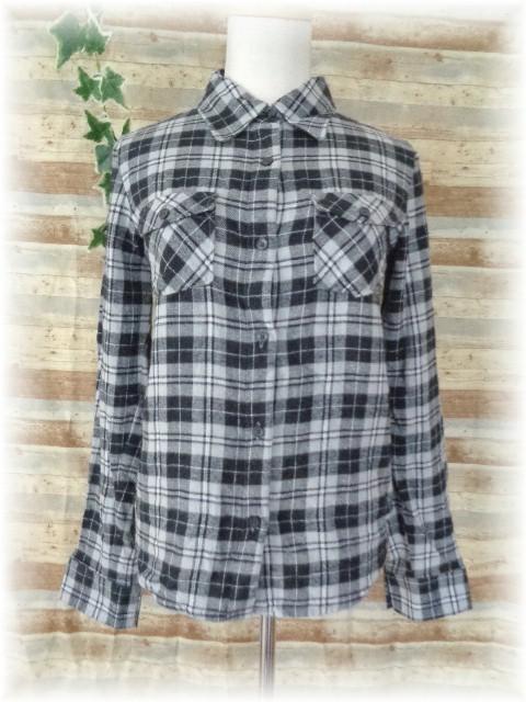 - GRAZIE ネル地長袖シャツ M グレー×ブラックチェック柄