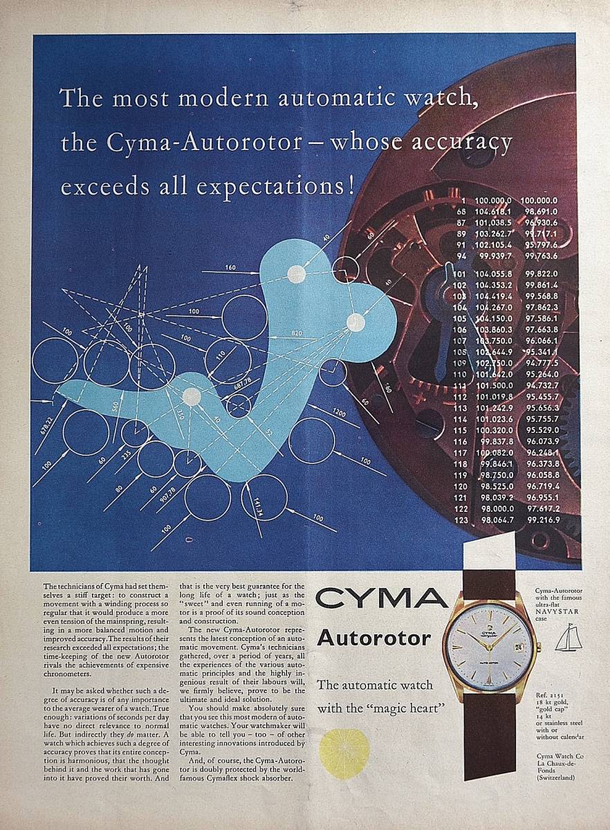- 稀少・時計広告!1961年シーマ 時計広告/Cyma Autorotor/Watch/K