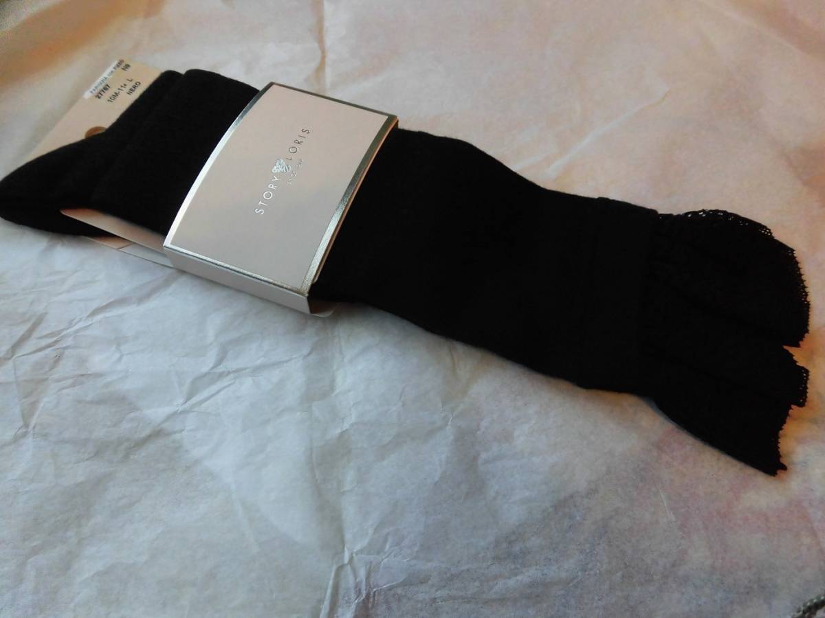 - イタリア、上質、STORY LORIS ウールとシルク混、幅広レースを組み合わせた サイハイ ソックス