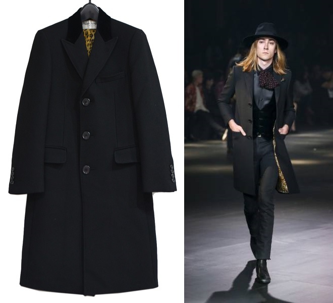 > 国内正規 saint laurent paris サンローランパリ 2016年商品 裏地 レオパード ウール 100% チェスター コート 42 ブラック Y-289444