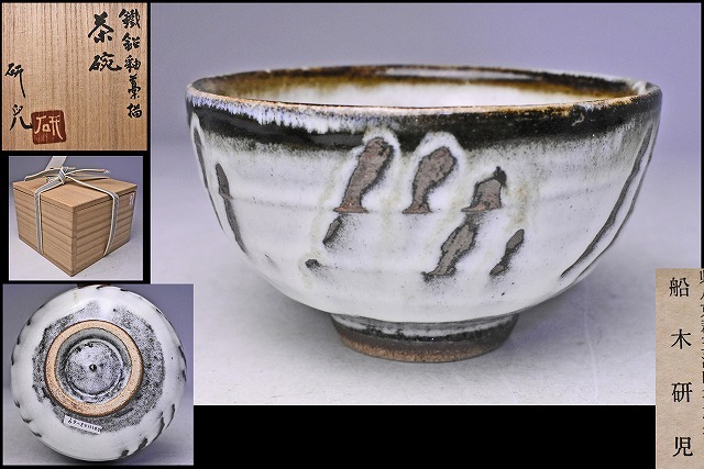 - 舩木研兒 ★ 黄釉湯呑 ★ 共箱栞 ★ 珍しい白釉の指掻タイプ ★ 希少作 ★ 船木研児 舩木研児 ★ 船木道忠の子