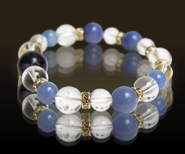 - スワロフスキー使用 ブルーアベンチュリ&水晶 ブレスレット