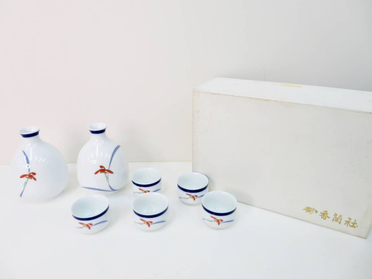 > ◆香蘭社 KORANSHA 徳利 御猪口 7客セット 蘭柄 花柄 酒器 酒 冷酒 熱燗 伝統 工芸品 未使用品 管理2011 Q-14