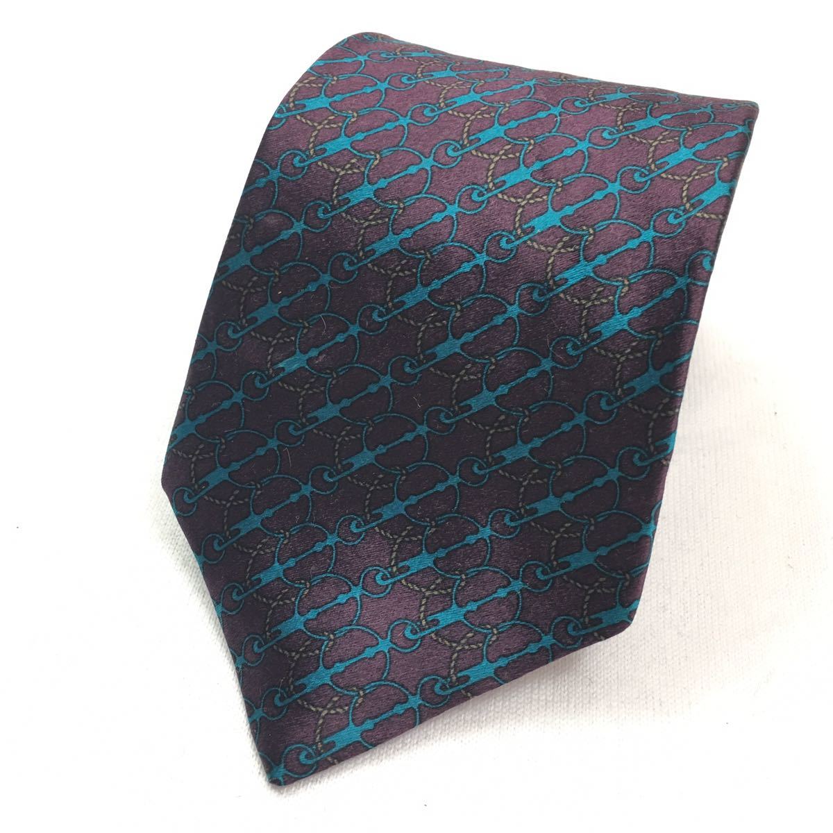 > ビンテージ 80s【DAMON】フック柄 オールドタイ シルクネクタイ イタリア製 古着 総柄 絹 90s 個性的 高級 スーツ モード ストライプ Y2K