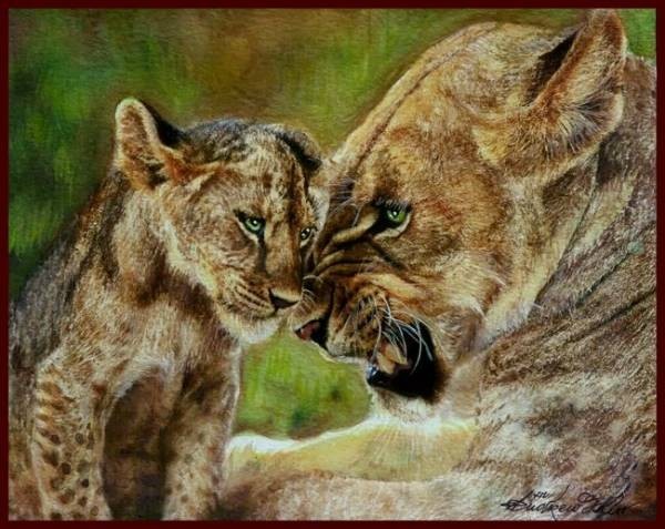 - ☆☆☆☆☆水彩画 親子の深い絆 「フロリダパンサーの母子」
