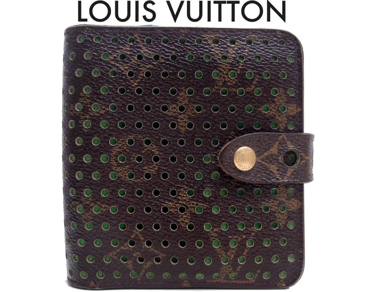 - 送料600円~LOUIS VUITTONモノグラム ペルフォ コンパクトジップ ヴェールM95218ファスナー小銭入れ付きグリーン2つ折り財布ルイヴィトン