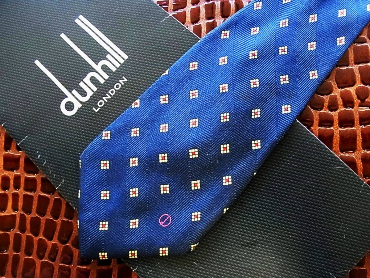 - ○E299N●USED並●【dunhill】ダンヒル【ロゴ入】ネクタイ★人気の細・ナロータイ