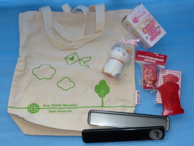- a★未使用・非売品★日本郵便 エコトートバッグとチャップリン 缶ペンケースと印鑑ケース他5点