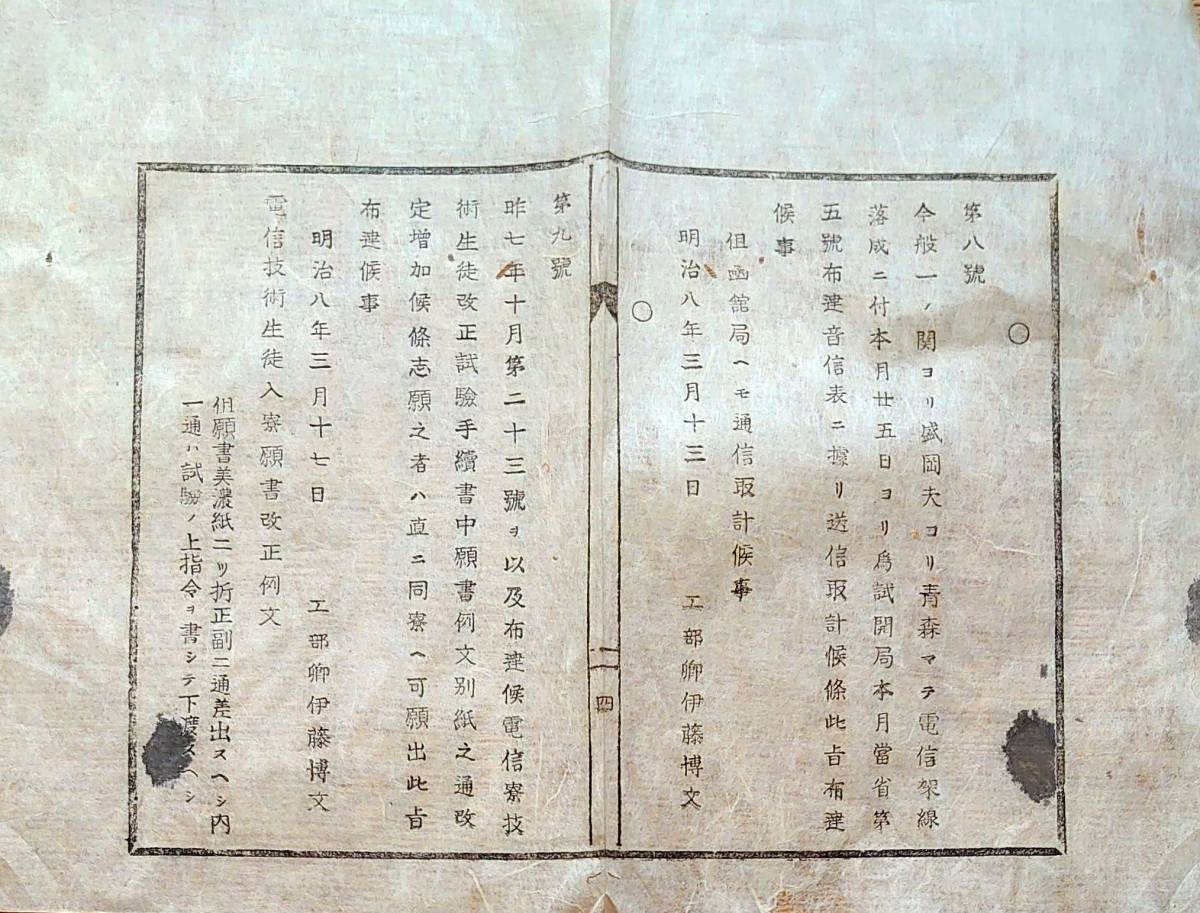 - f21012201〇明治布告 一ノ関より盛岡 其れより青森まで電信架線落成に付き 電信技術生徒入寮願 明治8年〇和本古書古文書