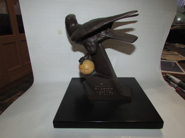 - (骨董市より購入・レトロな作家物・鷹ブロンズ像・ゴルフ記念品)貴重・珍品