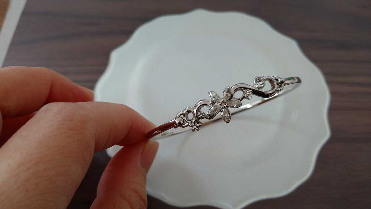 - □シルバーカラー&ラインストーン・お花モチーフの華奢なブレスレット□