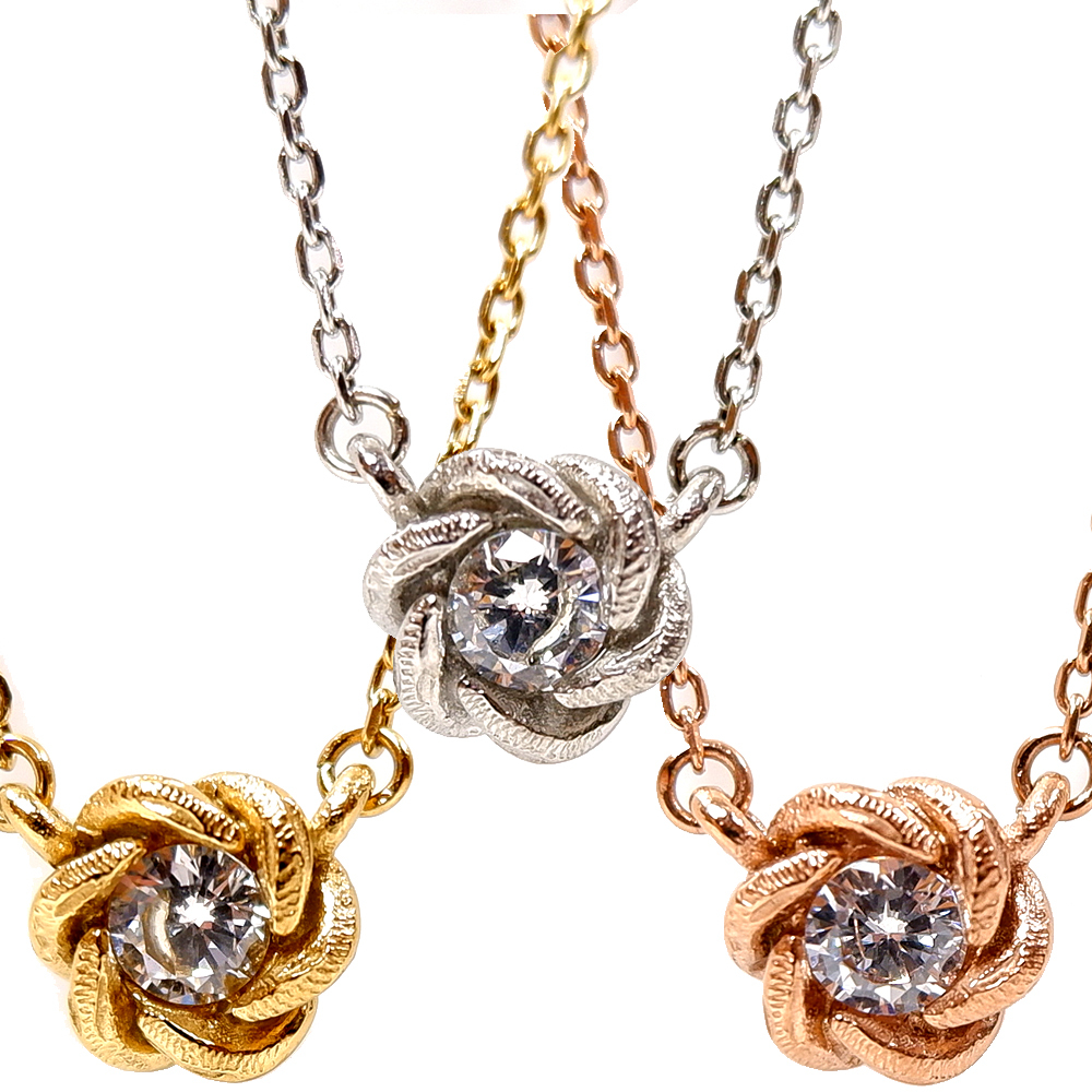 - ★ハワイアンジュエリー★金属アレルギー&温泉&海水浴ご使用OK★ステンレスペンダント★ジルコニア&ピンクゴールド&ゴールド&シルバー&花★