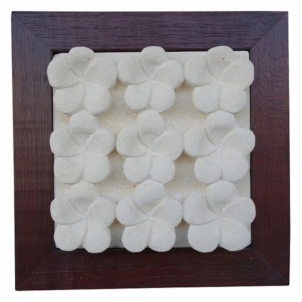 > プルメリア9 パラスストーンレリーフ 21X21 【リゾート フランジパニ プルメリアの花の彫刻 壁掛け 壁飾り】YSA-250161