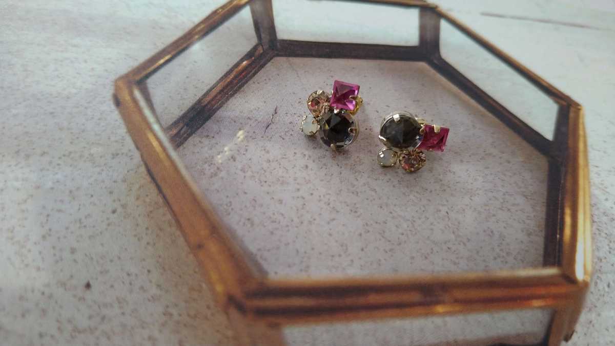 - □アンニュイカラーが素敵□クリアピンク・グレー・イエロー・乳白色ストーンのピアス□