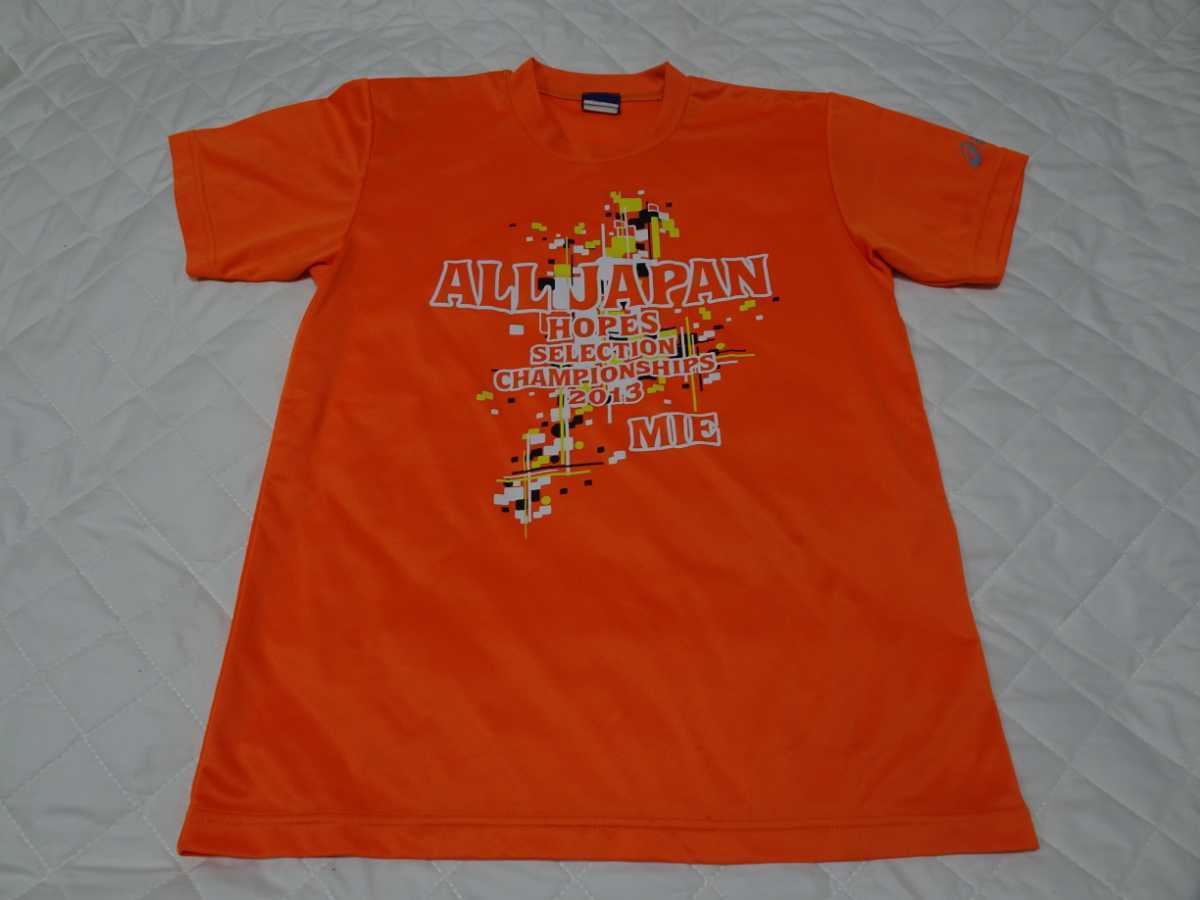 > ASICS アシックス 半袖練習着 プラクティスシャツ sizeM オレンジ色 ロゴ各種