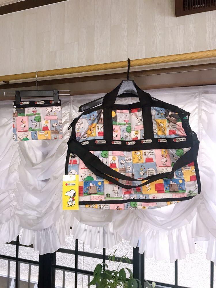 > レスポートサック スヌーピー 限定 ボストン バッグ LeSportsac SNOOPY PEANUTS 新品 未使用 総柄 レア コミック ウッドストック カラフル