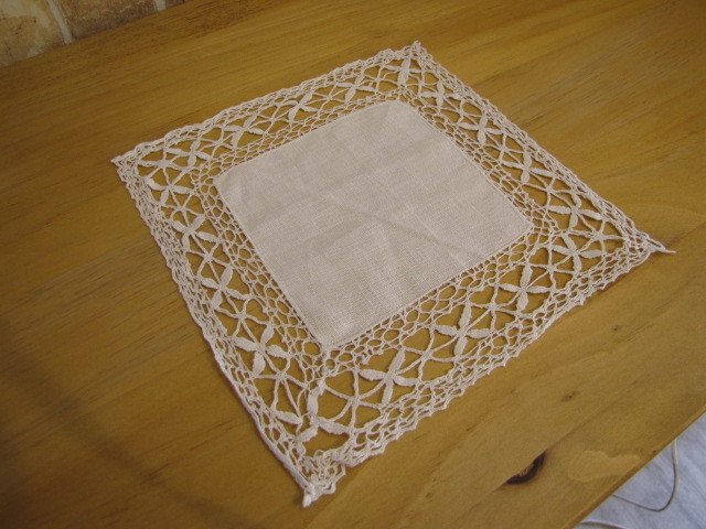 - アンティークリネン ティーマット フレンチ シャビー ドイリー レース タスマン 白い 花瓶敷き
