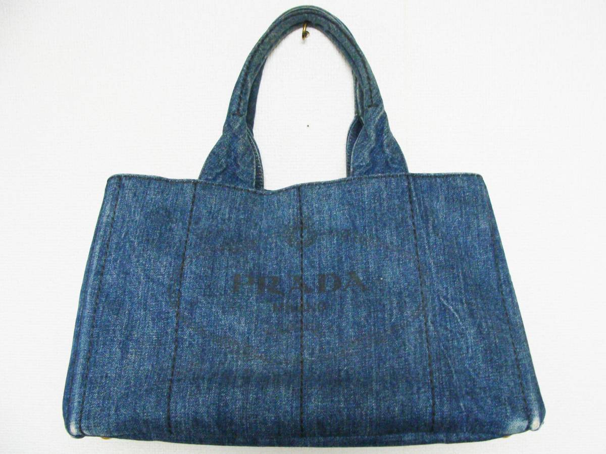 - PRADA プラダ ◇ インディゴ デニム 素材 カナパ ロゴ プリント ハンド トート バッグ 鞄