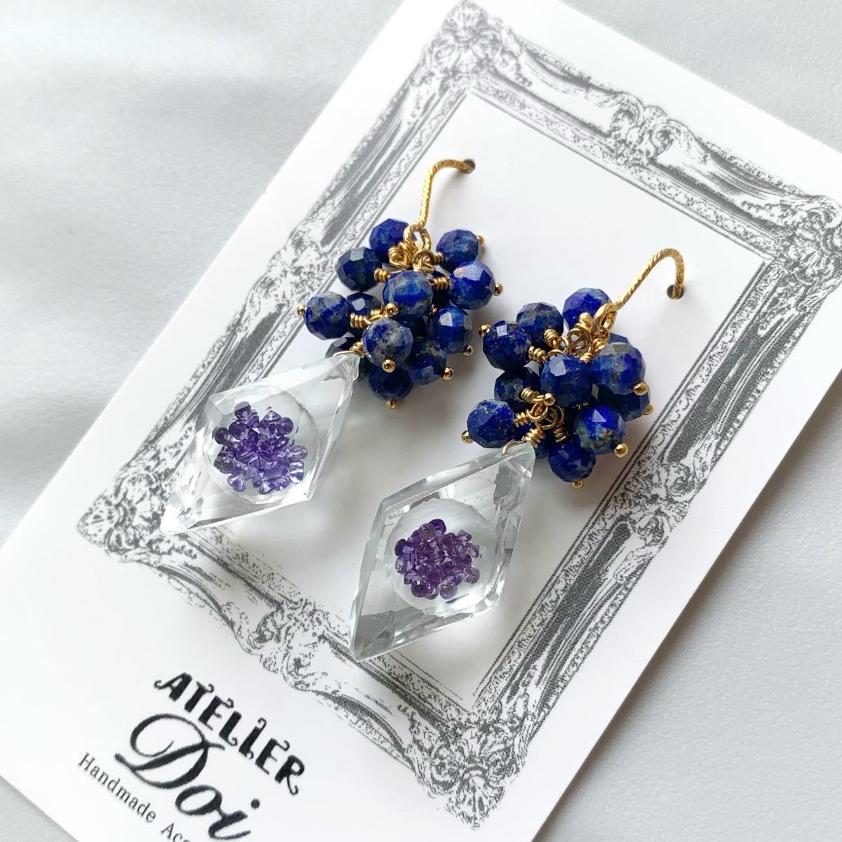 - [SALE]ジルコン×クリスタルとラピスラズリのピアス 天然石 k14gf