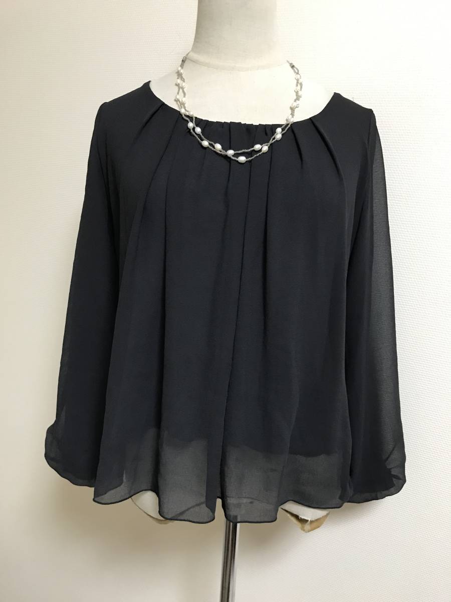 - 美品★ルスークふんわりシフォンタックブラウス★グレーM★8207