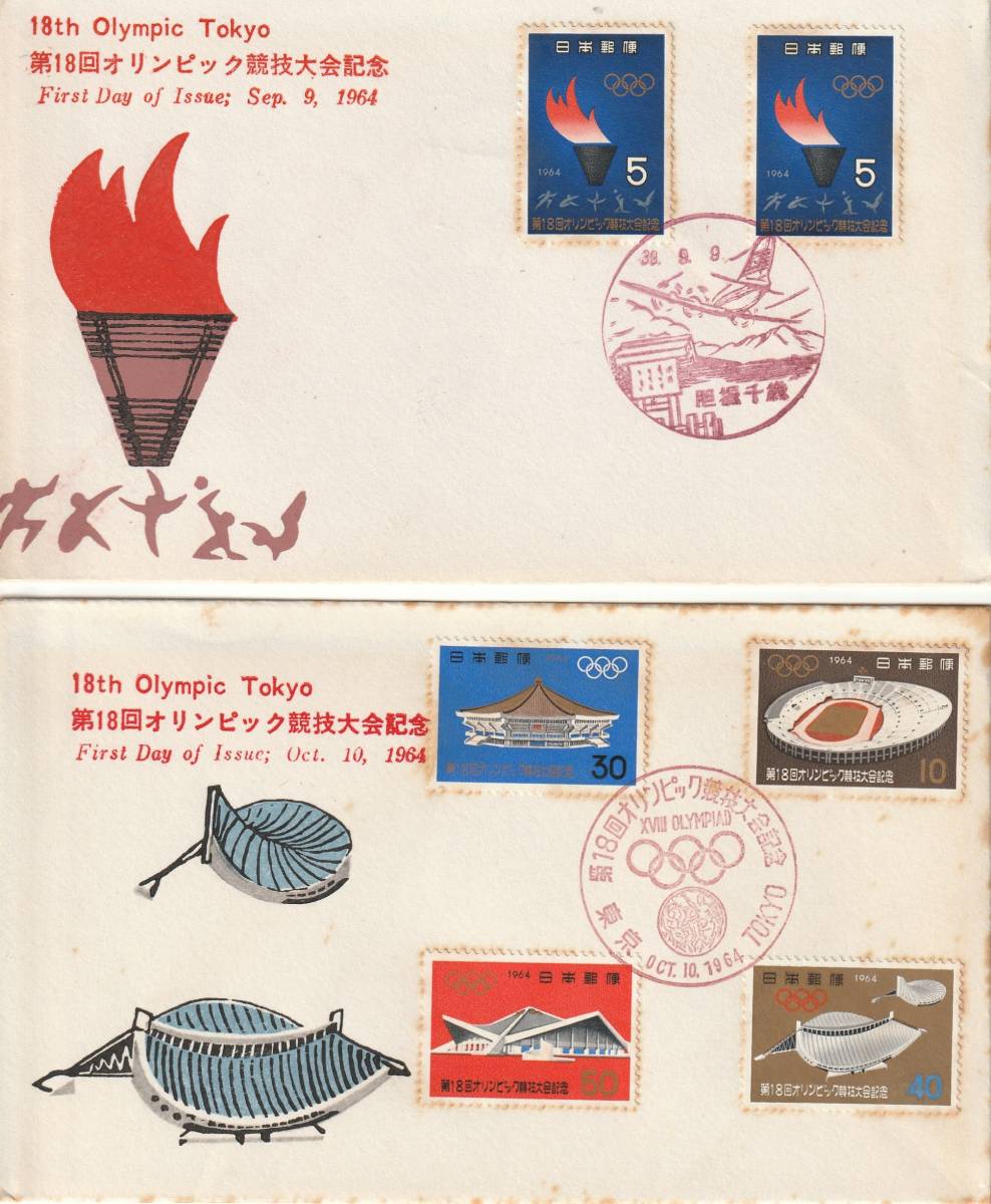 - FDC 1964年 オリンッピク東京大会 2通 切手文化