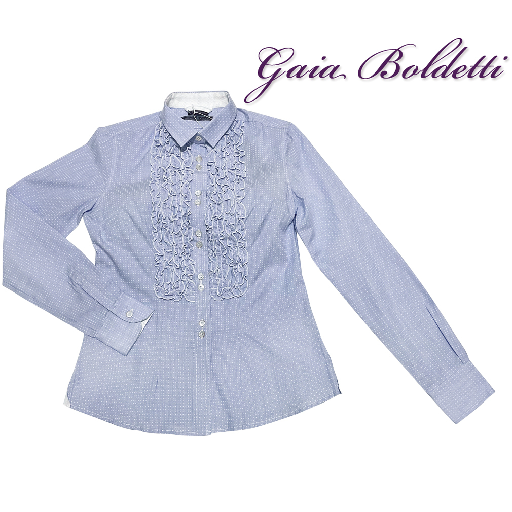 - 新品ガイアボルデッティーイタリア製フリルシャツブラウス#42ブルー
