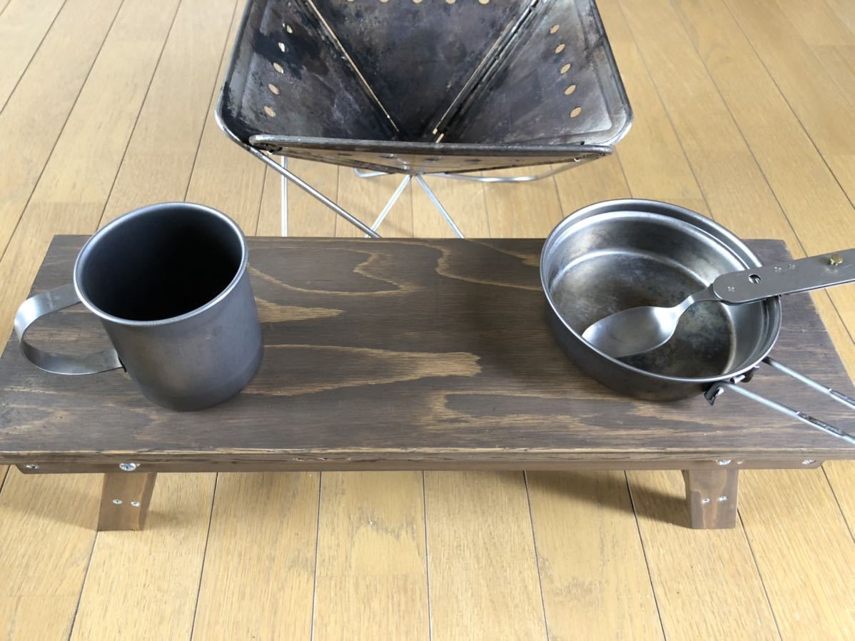 - ツーリング ソロキャンプなどに ハンドメイドローテーブル 焚火台S オイルステイン オーク②