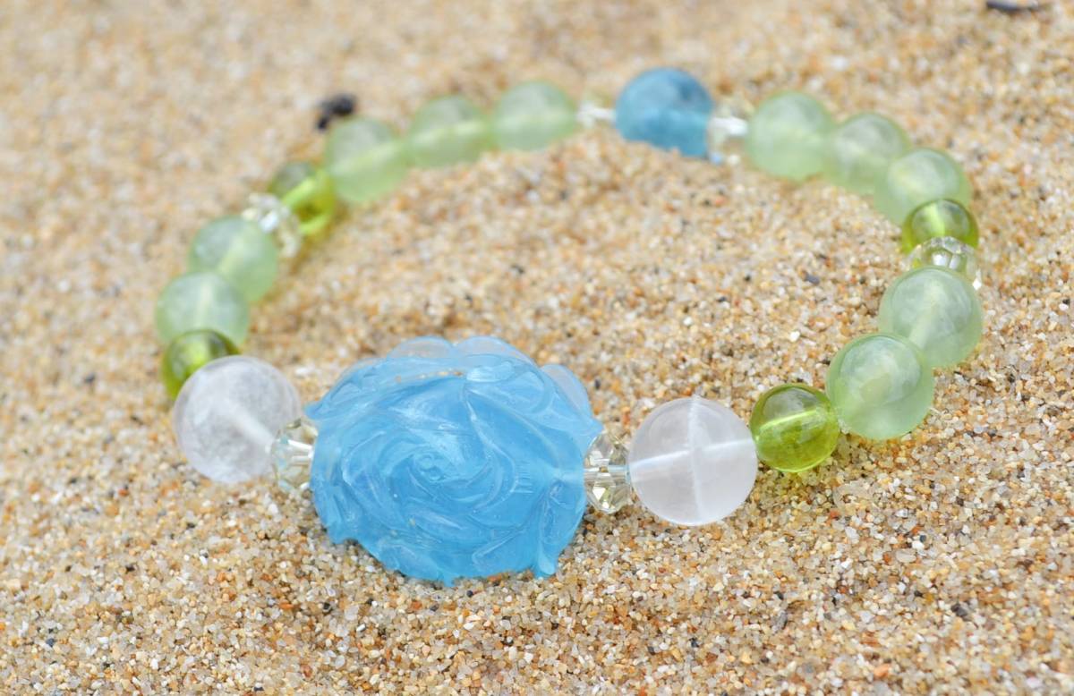 - アクアマリン ホワイトファントム プレナイト ペリドット オリジナルブレスレット 天然石パワーストーンブレスレット
