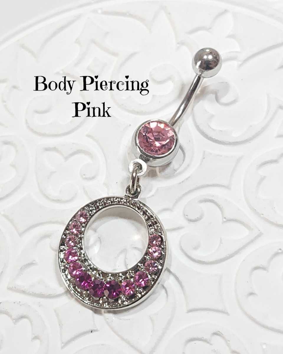 - BOD19 ジュエルストーン ボディピアス シルバー×ピンク サージカル316L メッキ加工 丸 月 バーベル へそピ 臍 耳 バナナ プレート 可愛い