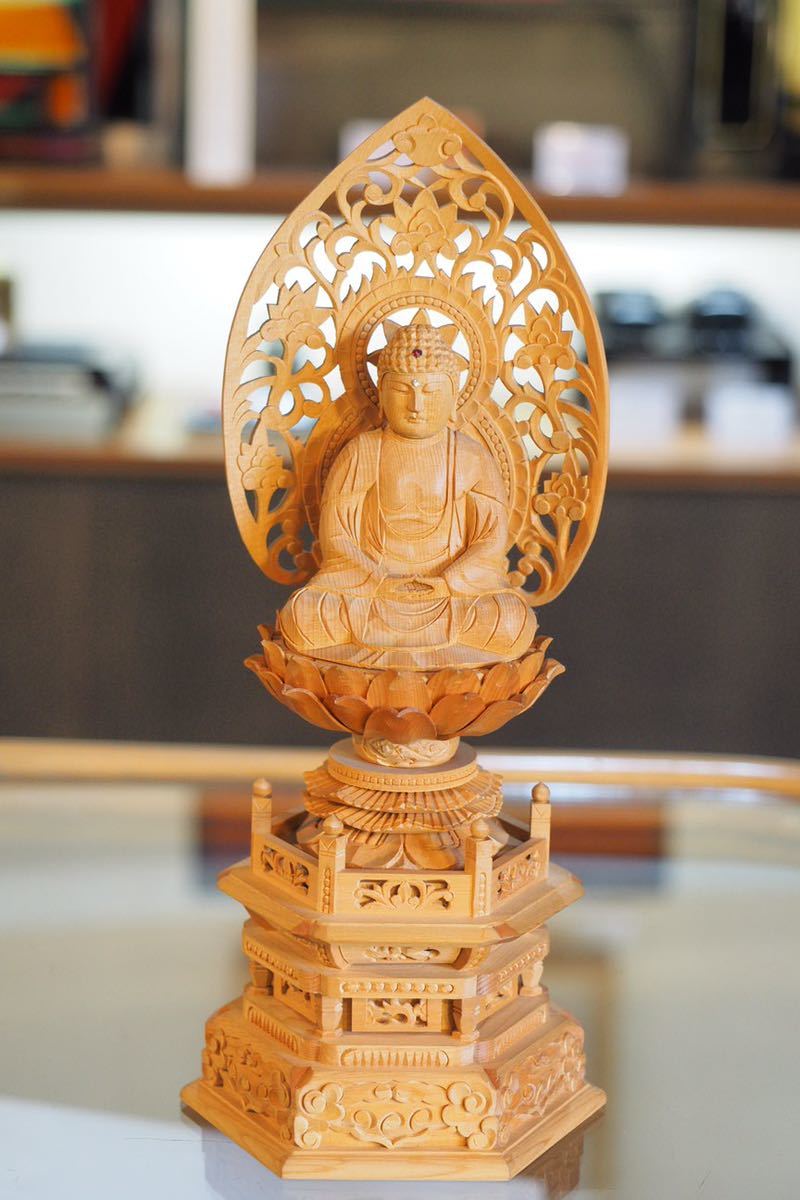 - 新品未使用 檜木 座釈迦 2.5寸 六角台座 木彫 仏像 釈迦如来 仏教美術