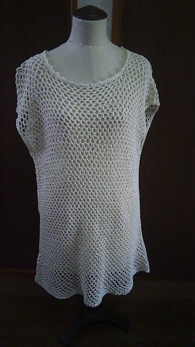 - .レディース ハンドメイド 手編みレースベスト Mサイズくらい 未使用品 アイボリー