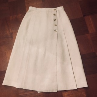 - 麻混 スリットスカート リネン プリーツ size/ 63 ナチュラルカラー 生成り ライトベージュ 日本製