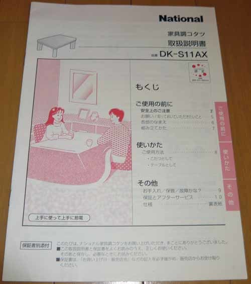 - 最終価格!☆昭和レトロ◆取扱説明書のみ◆松下電器産業◆家具調コタツこたつ【美品】Nationalナショナル DK-S11AX