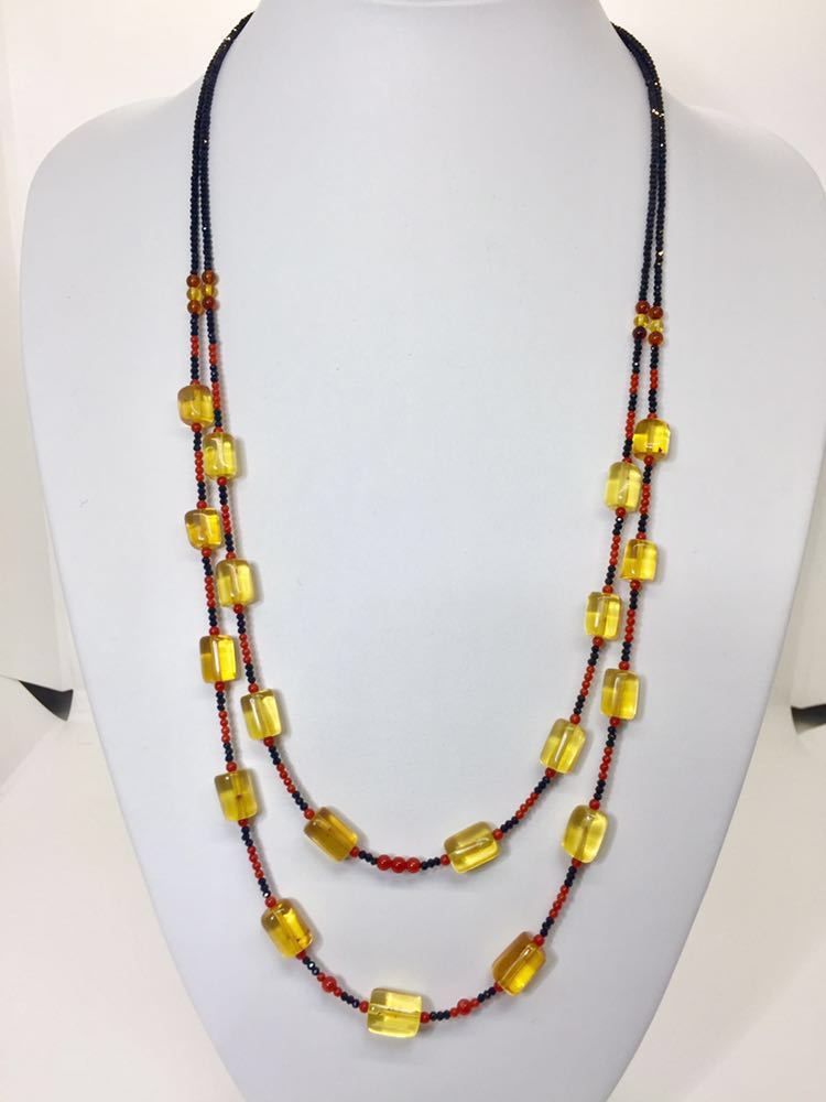 - 【新品】リトアニア産琥珀/天然珊瑚ネックレス*コーラル*コハクこはく*オリジナル*ブラックスピネル