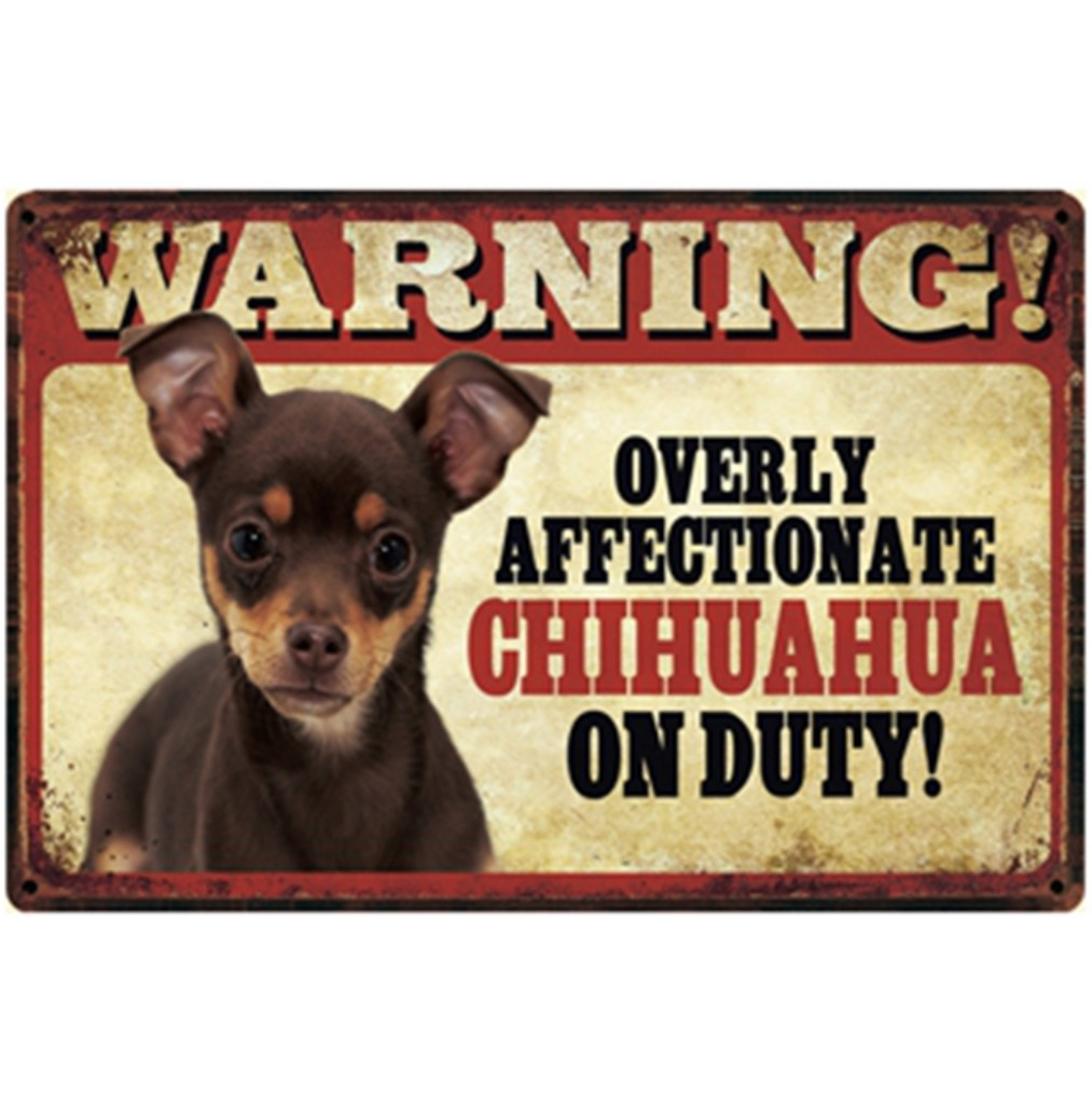 - A1455 メタル サイン ブリキ 看板 金属 製 プレート パネル 店 注意 危険 防犯 動物 ペット 犬 番犬 猛犬 チワワ【3042】