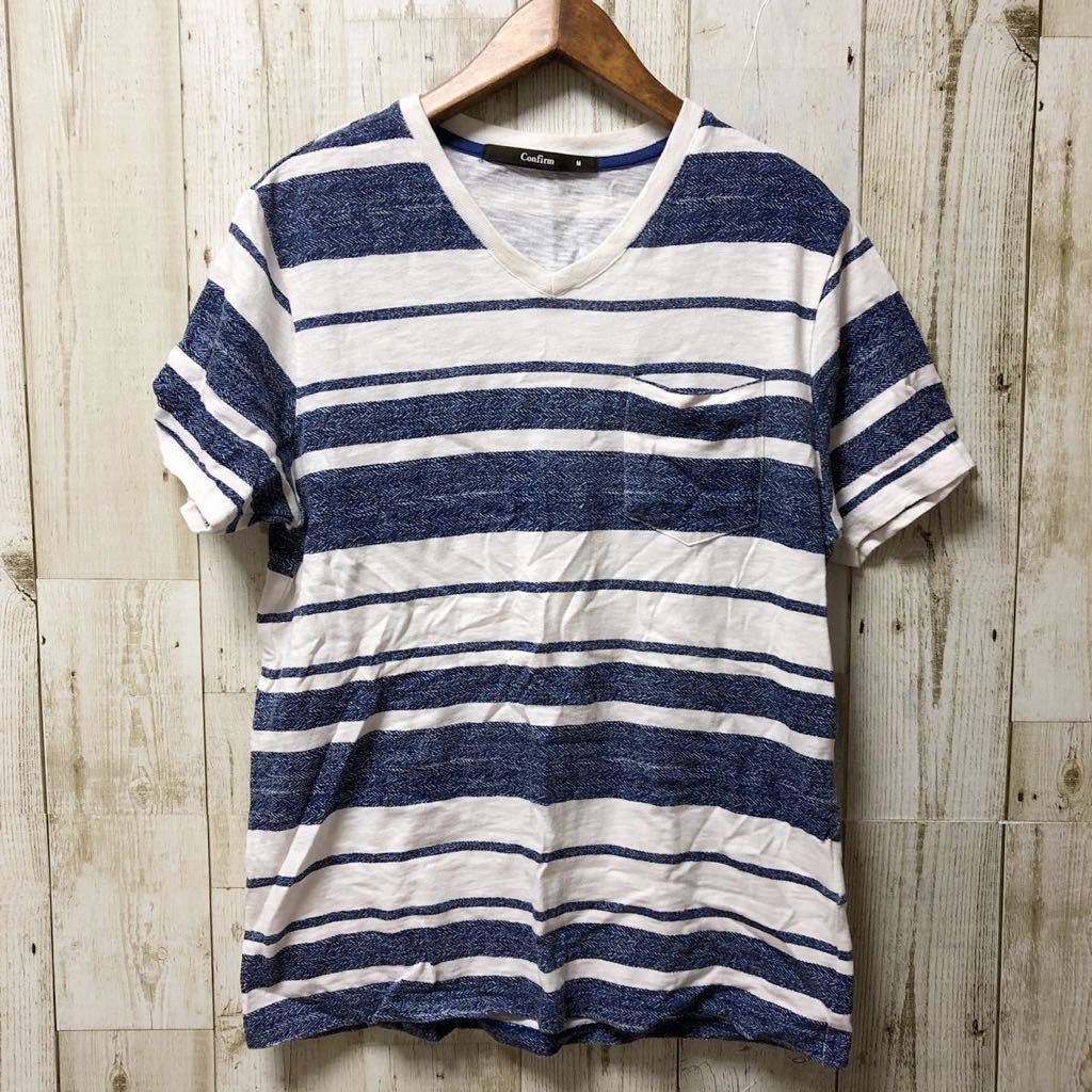 - Confirm コンファーム Vネック 半袖 ポケット Tシャツ ボーダー Mサイズ