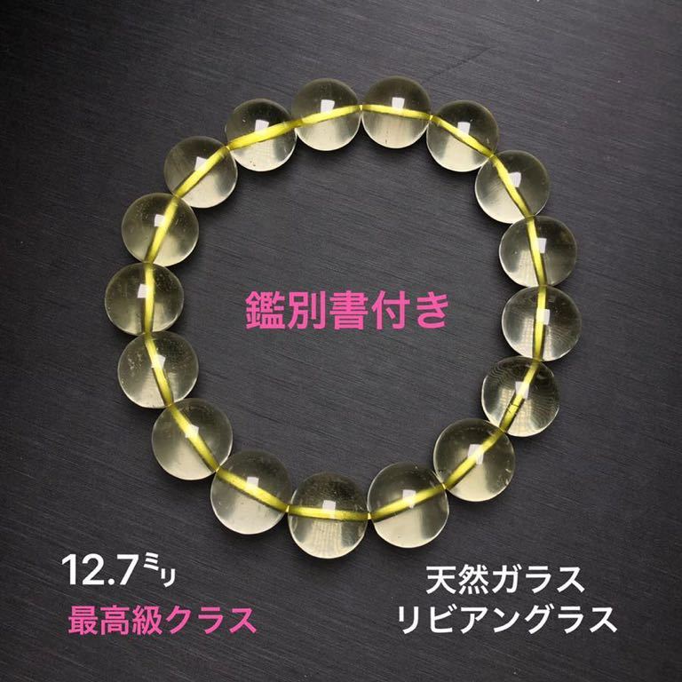 > 鑑別書付き 最高級 リビアングラス 不純物無し 高透度 究極の一品 12.7㍉ 隕石天然ガラス 宇宙 隕石 男女兼用 ブレスレット