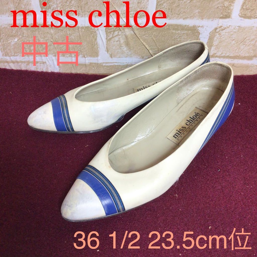 > 【売り切り!送料無料!】A-131 miss chioe!ローヒールパンプス!36 1/2! 23.5cm位!オフホワイト!ブルーライン!おしゃれ!中古!